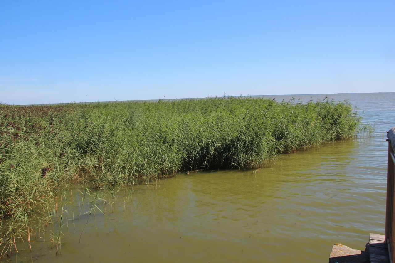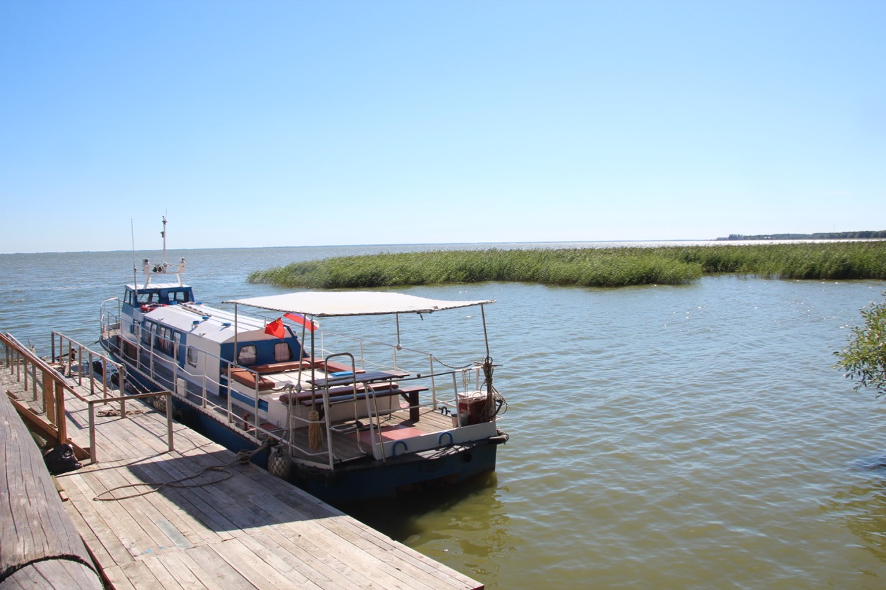 Im Besucherzentrum gibt es ein Café, wo uns ein reichhaltiges Mittagessen aus Fisch in allen Variationen erwartet. Der Nachtisch besteht aus Plinsen (ein neues Wort für mich) mit roter Grütze. Ziemlich vollgefuttert werfen wir noch einen Blick auf das Wasser, bevor wir wieder in den Bus einsteigen, um weiter auf die Nehrung hinaus zu fahren – wie gesagt: Sie ist ziemlich lang und alleine der russische Anteil beträgt 46 km.