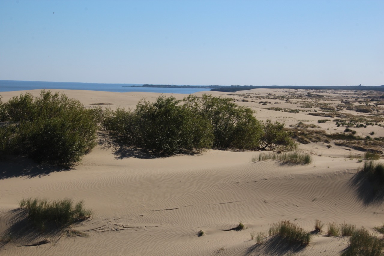 Gegen Mittag fahren wir weiter nach Osten bis auf die Kurische Nehrung. Sie ist 98 km lang und zwischen 300 m und 3,8 km breit. Auf der Nehrung liegen nur ganz wenige Dörfer und sie wird durch die Grenze in einen russischen und einen litauischen Teil getrennt. Die Geschichte der Nehrung ist von Sturmfluten und Sandkatastrophen gezeichnet, bei denen ganze Dörfer innerhalb sehr kurzer Zeit durch starke Winde vom Sand zugedeckt wurden – das letzte Mal in den 1980er Jahren.