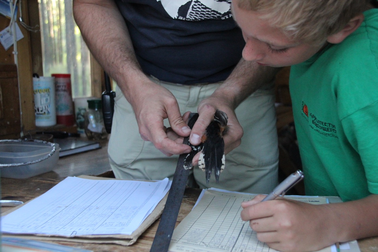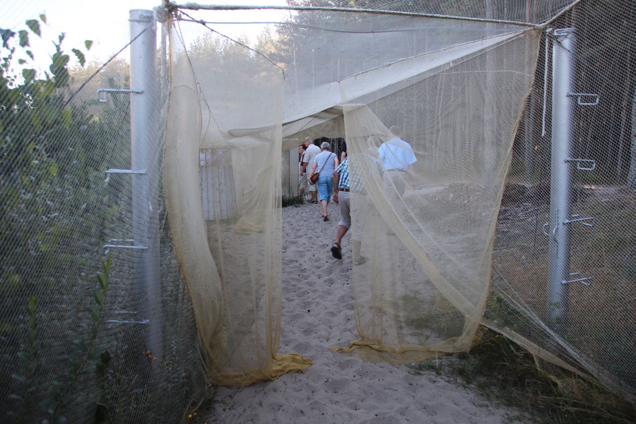 Der letzte Halt bevor wir nach Königsberg fahren ist die traditionsreiche Vogelwarte „Fringilla“ in Rossitten (Рыбачий, Rybatschi), immer noch auf der Nehrung. Sie wurde schon im Jahr 1901 gegründet und hat viel zur der Erforschung der Gewohnheiten der Zugvögel beigetragen. Sie befindet sich mitten im Wald. Unser Führer zeigt uns die seiner Aussage nach größten Netze der Welt, die in Form einer Reuse angeordnet sind, und mit denen sie jeden Tag Dutzende von Vögel fangen, sie beringen und dann wieder freilassen. Natürlich kommt die Führung nicht ohne eine Demonstration aus, und so zeigt er uns am Beispiel eines (halbwegs) frisch gefangenen Buntspechts, wie die Ornithologen in der Vogelwarte arbeiten. Armer kleiner Piepmatz, aber ich denke, er wird es überleben.