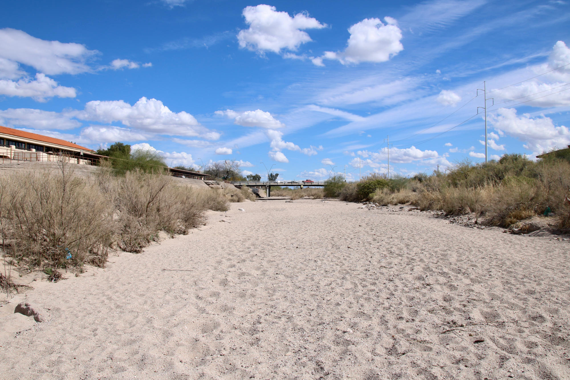 Das Prägnanteste in meiner Umgebung ist neben der mexikanischen Architektur (die Grenze zu Mexico ist nur etwa eine Stunde entfernt) das riesige ausgetrocknete Flussbett, dass nur einmal im Jahr zur Monsunzeit Wasser führt. Dafür aber dann auch gleich richtig viel.