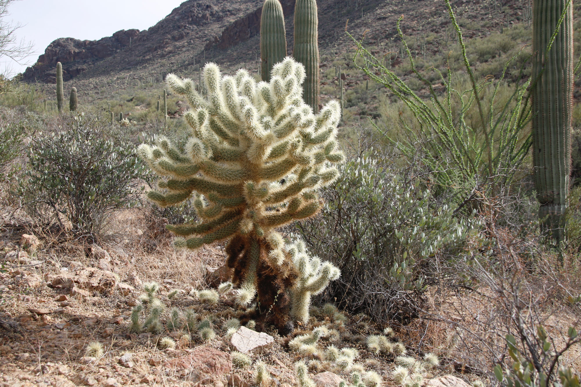 In der Sonora-Wüste sieht es, wenig überraschend, wenn man an die oben erwähnten Old Tucson Studios denkt, aus wie im Western. Dominiert wird alles von den riesigen Saguaros, die mehrere hundert Jahre alt werden können und alleine schon etwa 80 Jahre brauchen, bis sie die ersten Arme entwickeln. Die Vielfalt an Kakteen und anderen Wüstenpflanzen ist jedoch groß. Von kleinen, harmlosen niedlichen Mammilaria bis zu großen Paloverde Bäumen. Dabei gilt: Je größer die Stacheln, desto harmloser. Manche Arten haben mikroskopisch kleine Nadeln mit Widerhaken, die man nur schwer wieder los wird.