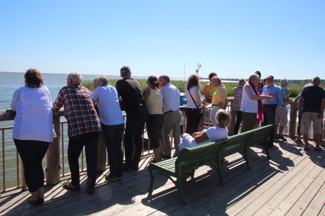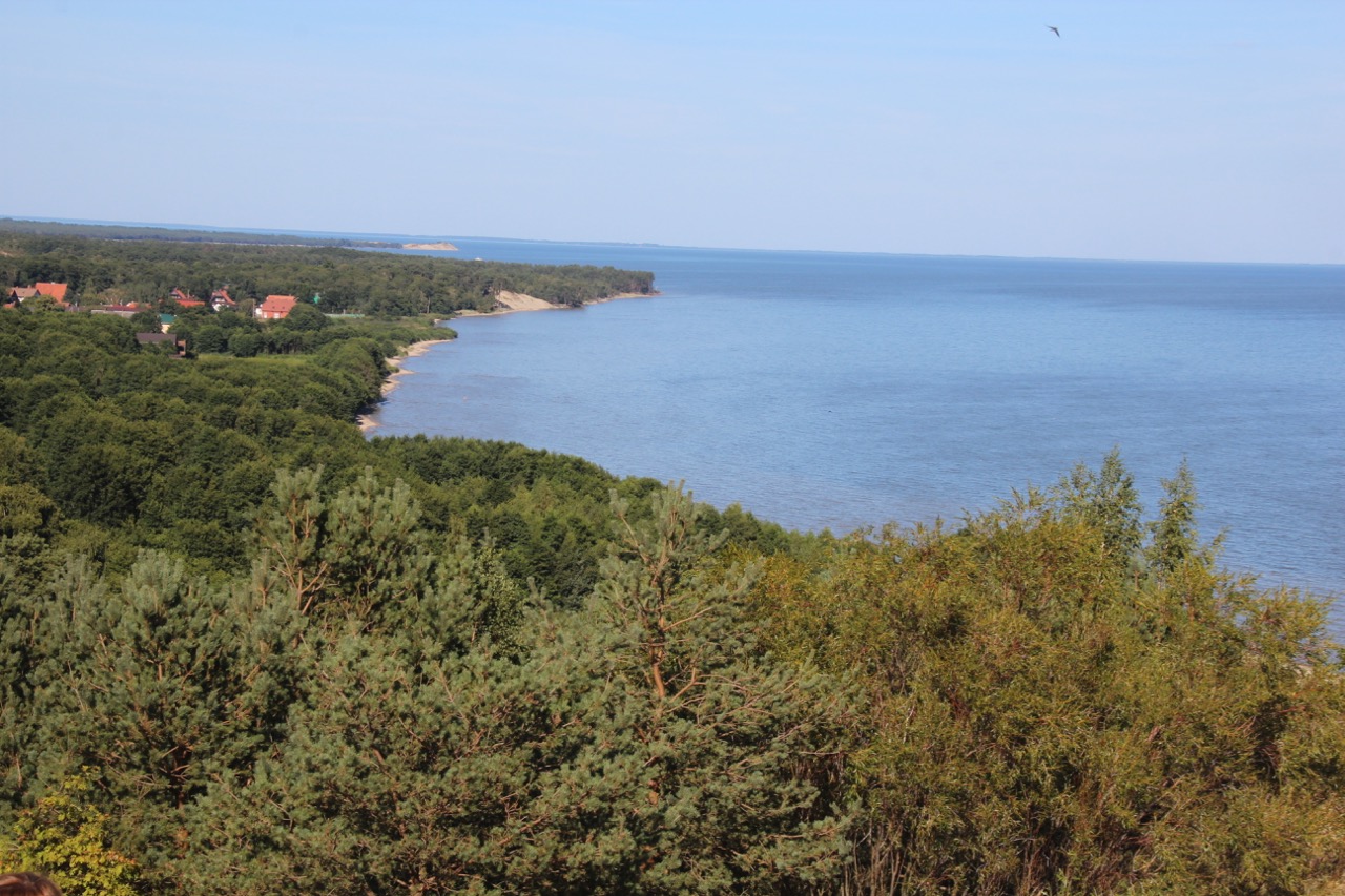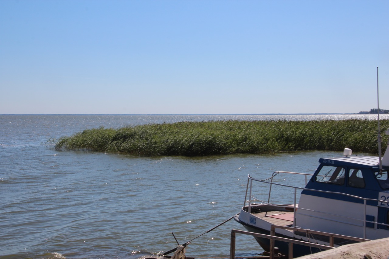 Im Besucherzentrum gibt es ein Café, wo uns ein reichhaltiges Mittagessen aus Fisch in allen Variationen erwartet. Der Nachtisch besteht aus Plinsen (ein neues Wort für mich) mit roter Grütze. Ziemlich vollgefuttert werfen wir noch einen Blick auf das Wasser, bevor wir wieder in den Bus einsteigen, um weiter auf die Nehrung hinaus zu fahren – wie gesagt: Sie ist ziemlich lang und alleine der russische Anteil beträgt 46 km.