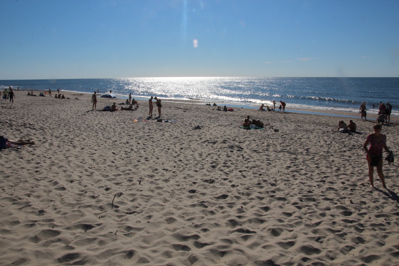Auf der anderen Seite kann man an einem breiten Sandstrand in der Ostsee baden. Wir machen uns also auf den Weg zurück, über den Parkplatz und zum anderen Ufer der Nehrung. Die Ostsee ist generell kälter als die Nordsee und viel kälter als das Mittelmeer. Wenn man an die 20 Grad Grenze herankommt, ist das schon etwas Besonderes. Für mich als bekennenden Warmduscher ist das definitiv nichts zum Baden, deshalb beschränke ich mich darauf, meine Füße ins Wasser zu halten. Das tut nach der ganzen Lauferei gut 🙂